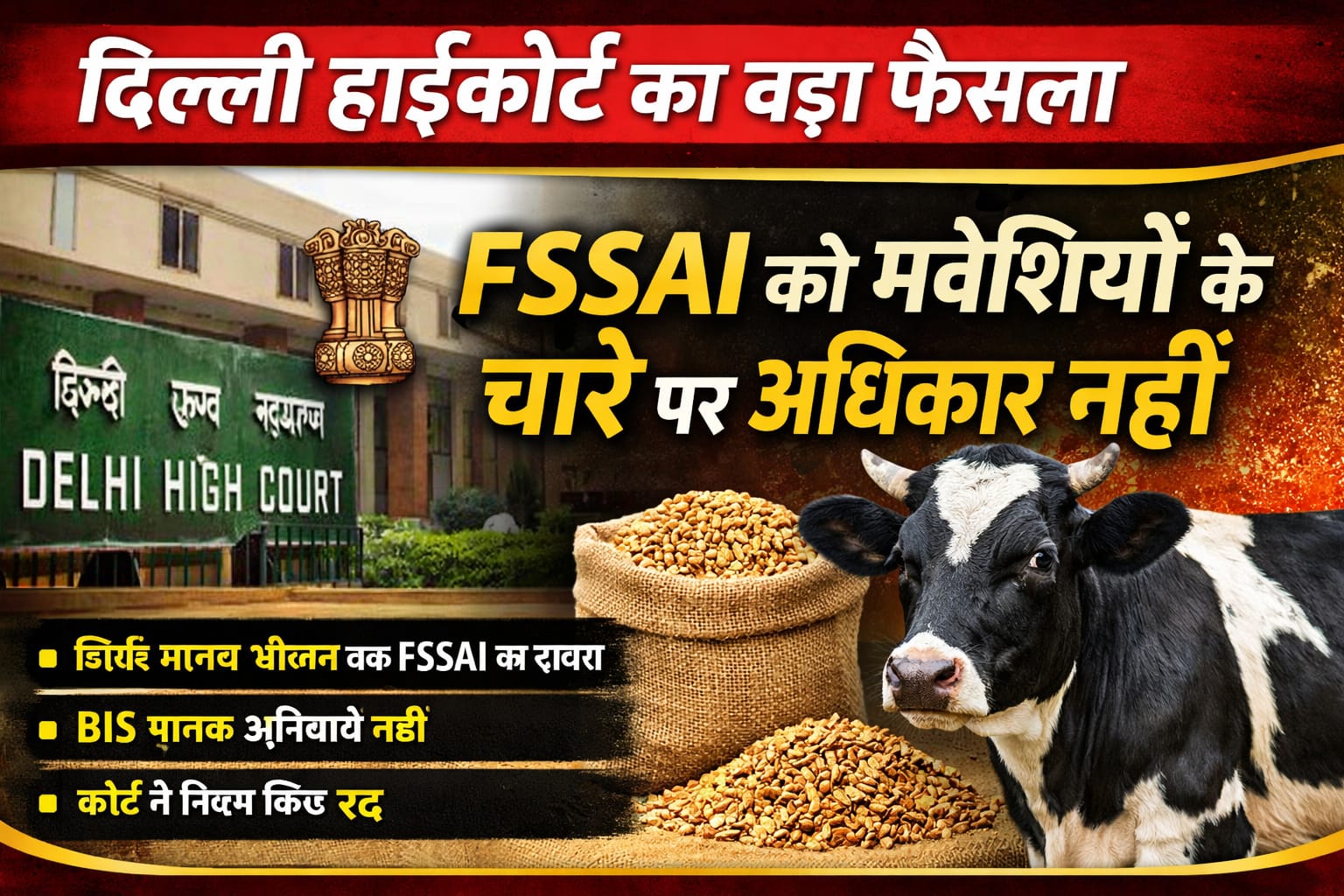 दिल्ली हाई कोर्ट ने एक अहम फैसले में स्पष्ट कर दिया है कि भारतीय खाद्य सुरक्षा और मानक प्राधिकरण (FSSAI) को मवेशियों या पशुओं के चारे को रेगुलेट करने का अधिकार नहीं है। अदालत ने कहा कि यह शक्तियां खाद्य सुरक्षा और मानक अधिनियम 2006 के दायरे से बाहर हैं।